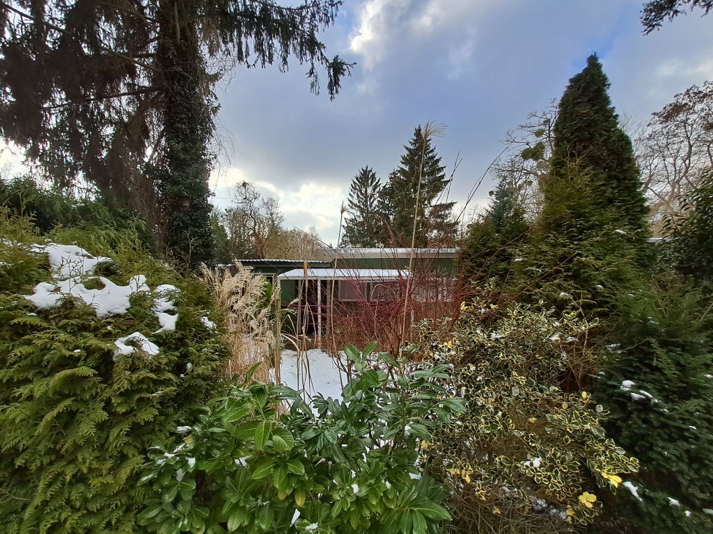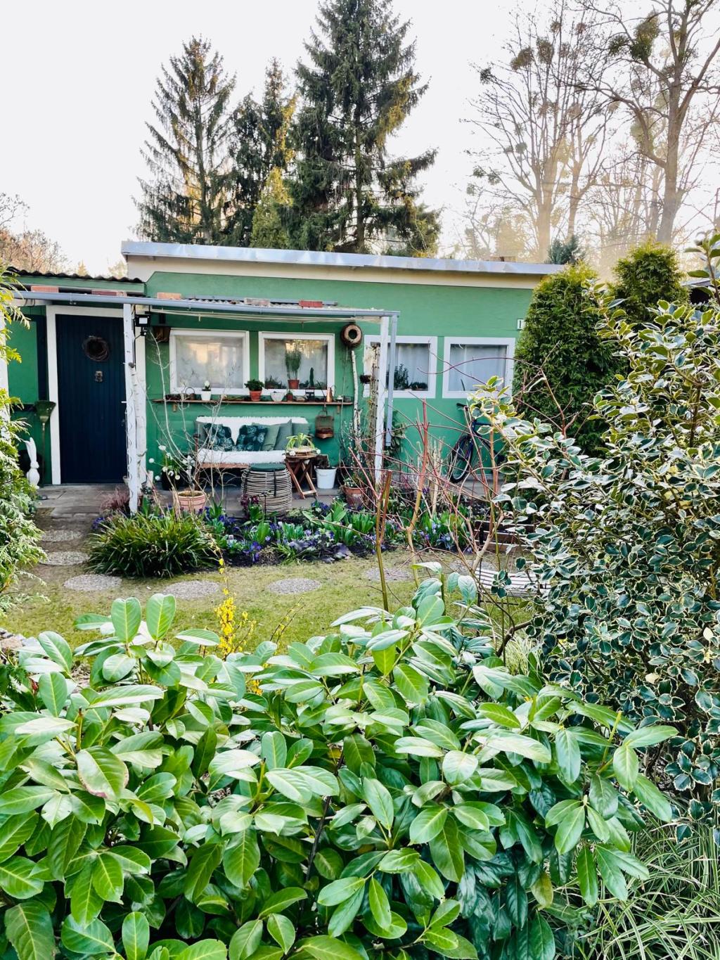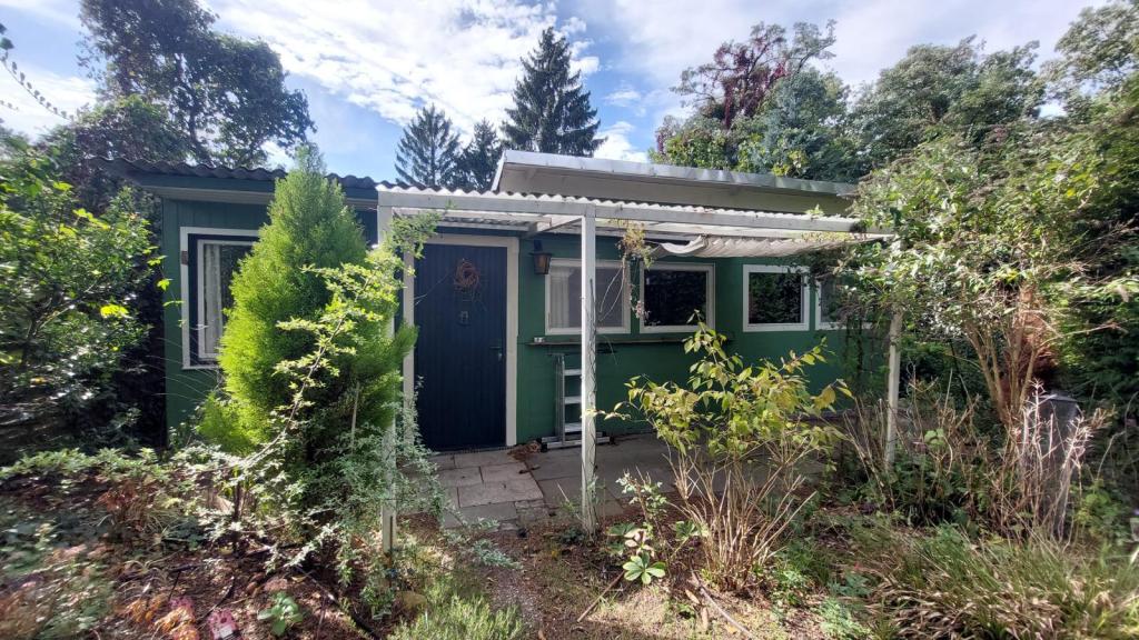 Das 161 qm große Grundstück ist mit einer ca. 30 qm großen Laube bebaut. Nach vorn schließt sich eine ca. 8 qm große überdachte Terrasse an. Es sind zwei Schuppen mit insgesamt ca. 5 qm vorhanden.