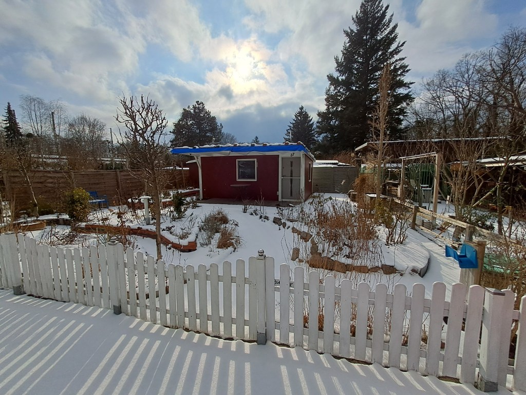 Auf dem 144qm großen Grundstück steht eine Laube mit ca. 23qm. Dir Laube verfügt über Dusche & WC an Sammelgrube. Die Terrasse ist ca. 23qm & der Schuppen ca. 3qm groß.