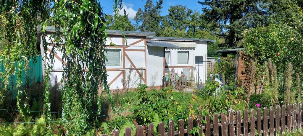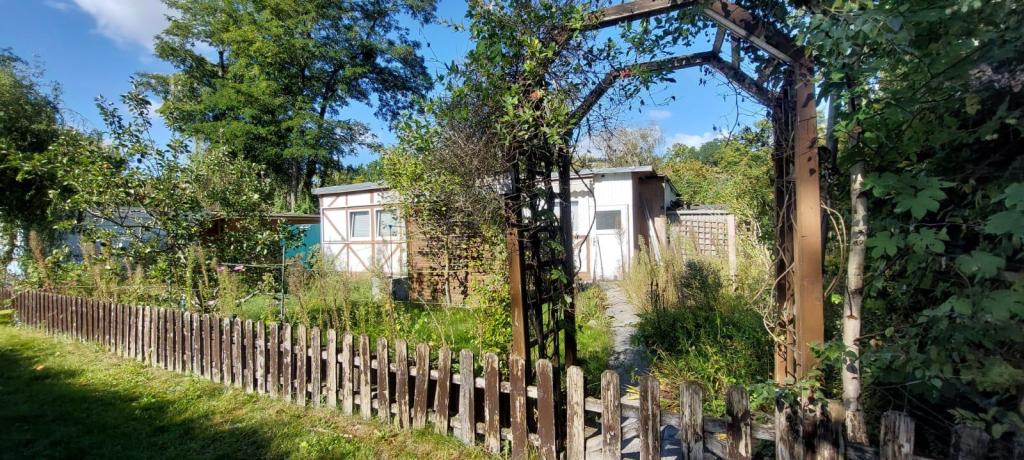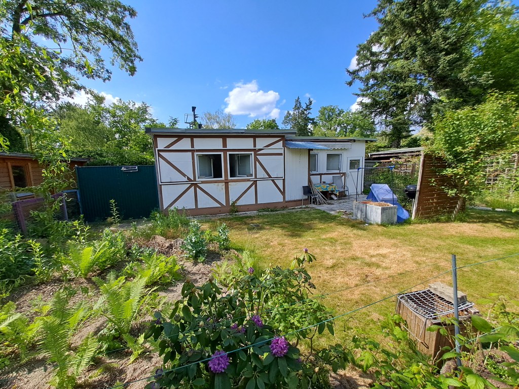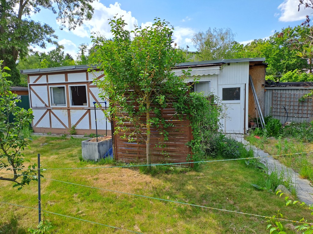 Auf dem 223 qm großen Grundstück steht eine 50 qm große Laube mit einem Wasserschaden.
