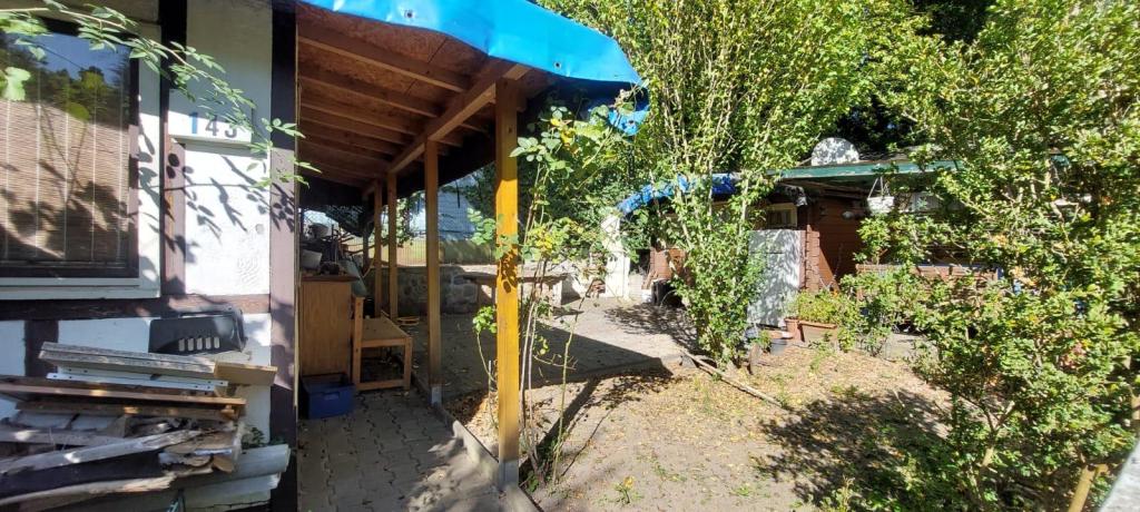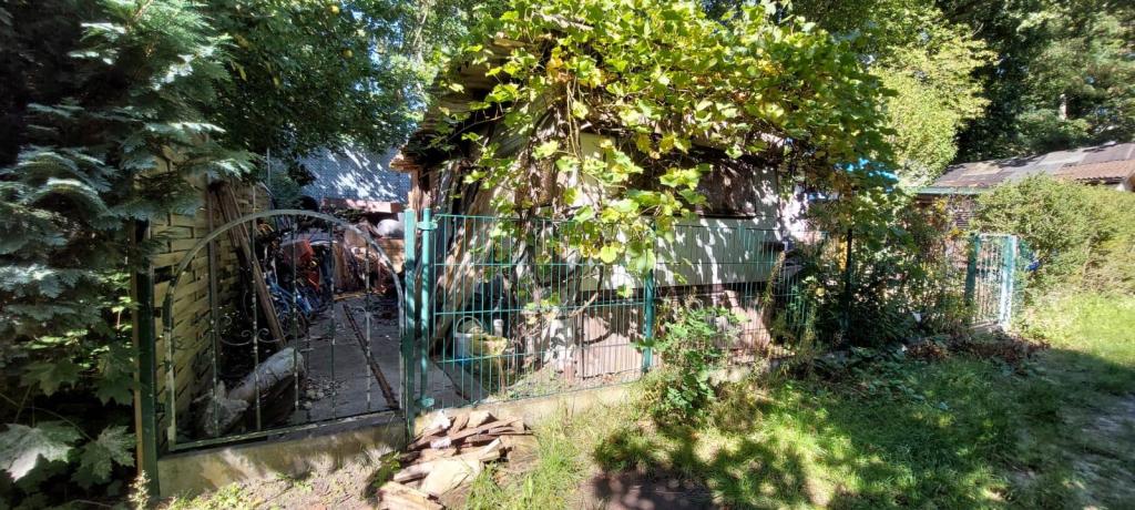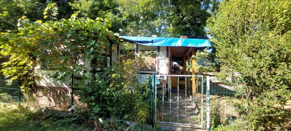 Das 158 qm große Grundstück ist mit einer Laube bebaut. Es befinden sich zudem ein Schuppen und eine Terrasse auf der Parzelle.